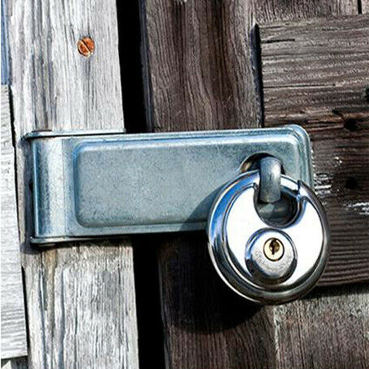 Lucchetto Rotondo Antiscasso Catenaccio 80mm Corazzato Blindato 2 Chiavi Ideale per la chiusura di serrande, finestre e portoni. La sicurezza non è mai abbastanza e questo catenaccio può fare al caso vostro. alta qualità del blocca disco lucchetto in acciaio, professionale e super resistente lucchetto catenaccio cementato con chiave e cilindro, a disco dalla forma tonda e antiscasso e antitaglio. Ideale per la chiusura di serrande, finestre e portoni. La sicurezza non è mai abbastanza e questo catenaccio può fare al caso vostro. Come con tutte le serrature di questo tipo con grillo in acciaio suggeriamo una lubrificazione annuale nel foro di bloccaggio in cui il grillo si adatta. Questo estenderà la longevità del vostro blocca disco. MAGGIORI INFORMAZIONI Caratteristiche principali: Diametro di 80mm, diametro del grillo 8mm Resistente contro gli agenti atmosferici Dotato di 2 chiavi per la sua apertura. Con il grillo chiuso, si rende impossibile da monomettere. Manutenzione consigliata. La confezione contiene: Nr. 1 Catenaccio Nr. 1 Chiavi