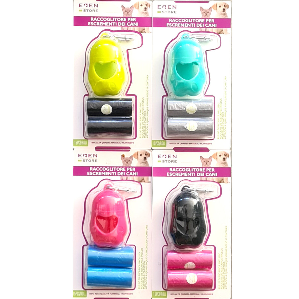 RACCOGLITORE PORTA SACCHETTI IGIENICI ESCREMENTI CANE 30 BUSTE FECI GANCIO CACCA