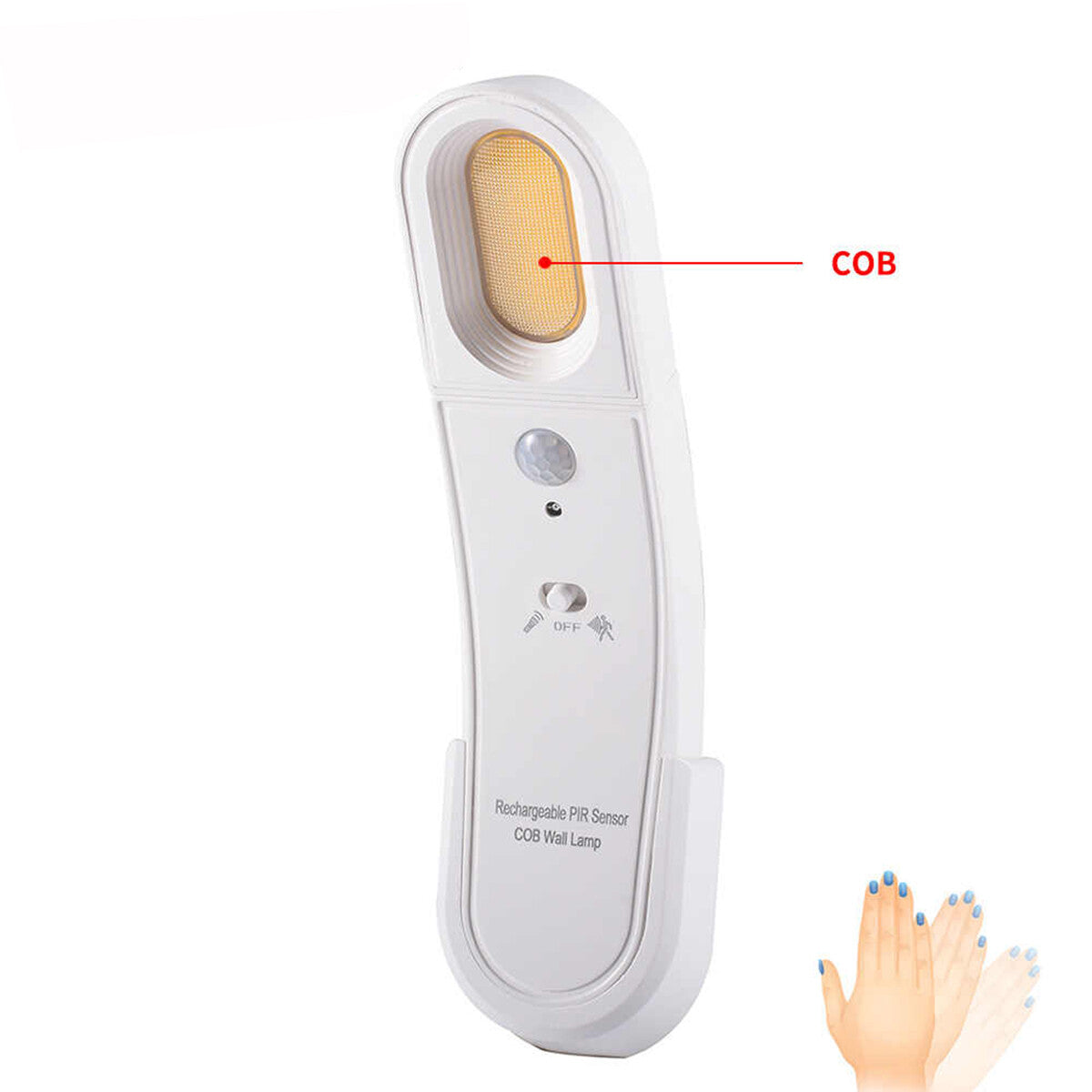 LAMPADA TORCIA A PARETE MURO PORTATILE LUCE EMERGENZA LED PIR COB ARMADIO B0296
