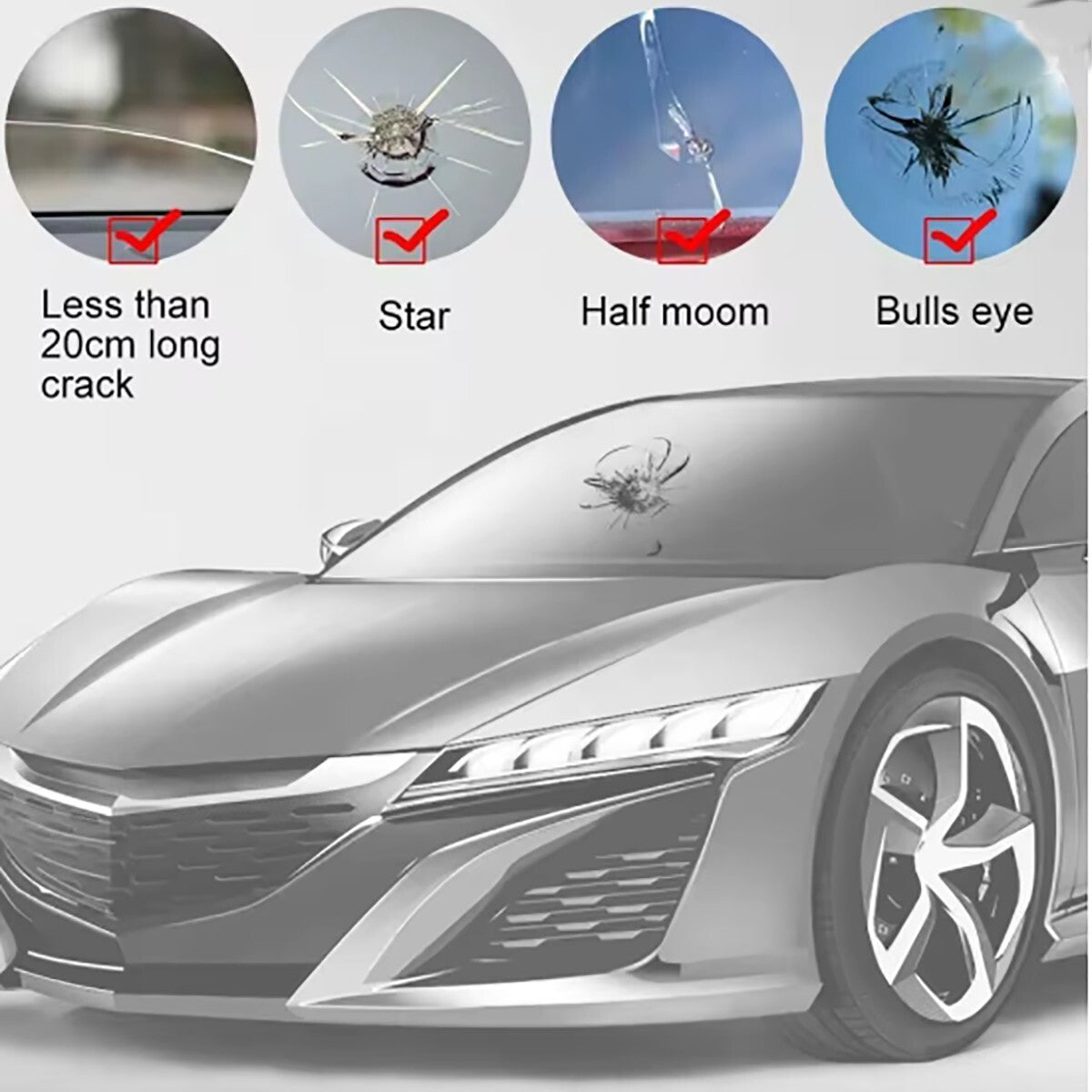 KIT RIPARAZIONE PARABREZZA AUTO SCHEGGE RESINA VETRO FAI DA TE CREPE RIPARA
