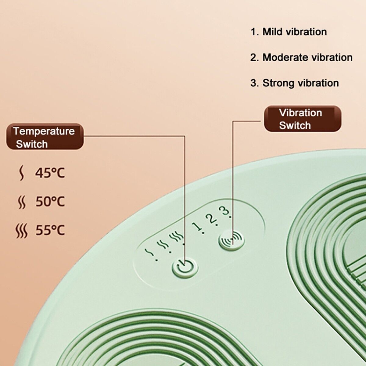 Piedi caldi e massaggio in un unico dispositivo! Questo scaldapiedi elettrico combina riscaldamento rapido e vibrazione per una piacevole sensazione di comfort e relax. Perfetto per le giornate fredde o per alleviare la fatica dopo una lunga giornata. Doppia funzione: Riscaldamento + Massaggio per un'esperienza di benessere unica. 3 livelli di temperatura: 45°C, 50°C e 55°C per un calore personalizzato. 3 livelli di vibrazione: Scegli l'intensità del massaggio che preferisci. Riscaldamento rapido: Tecnologia PI per una distribuzione uniforme del calore. Sicurezza garantita: Spegnimento automatico dopo 4 ore di utilizzo. Facile da usare: Grandi pulsanti per il controllo senza doversi piegare. Ultra sottile e compatto: Solo 3,5 cm di spessore, perfetto per piccoli spazi. Silenzioso e senza luce fastidiosa: Per un relax senza distrazioni. Materiale resistente alle alte temperature e basso consumo energetico (5V USB). MAGGIORI INFORMAZIONI Caratteristiche principali: Materiale: PP (resistente e durevole) Tensione: 5V Potenza: 10W Frequenza: 50Hz Dimensioni: 30 x 30 x 3,5 cm Colore disponibile: Beige / Verde Il colore verrà inviato in base alla disponibilità di magazzino La confezione contiene: Nr.1 Scaldapiedi massaggiante
