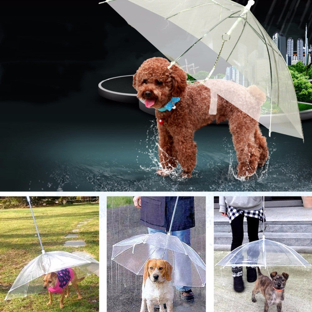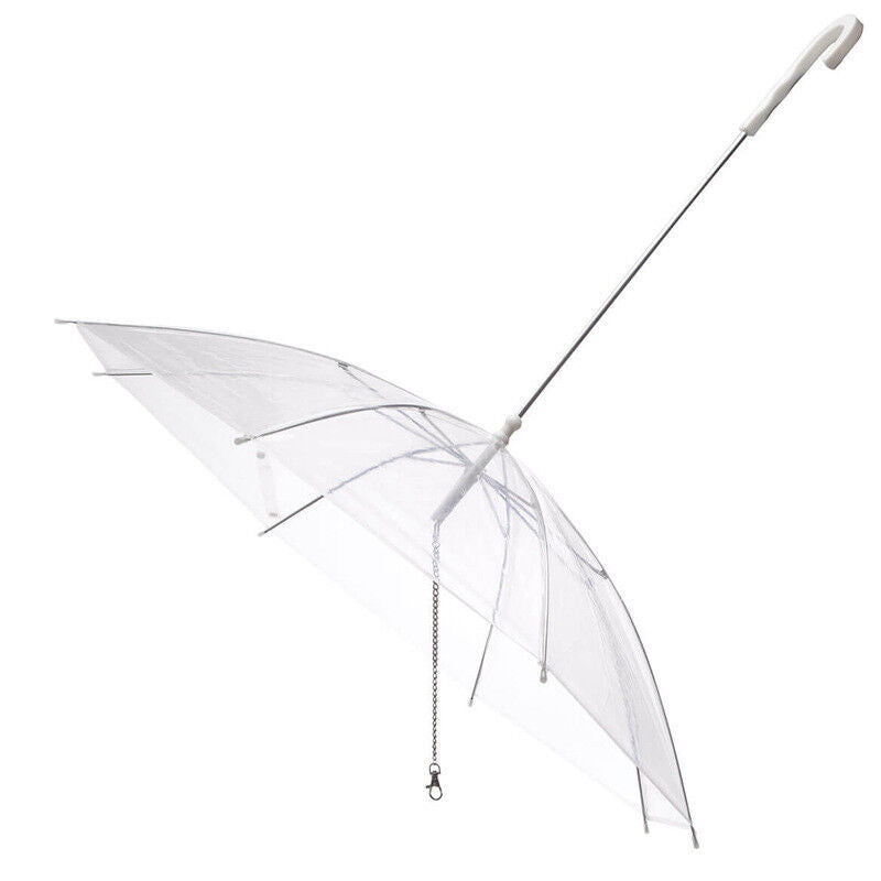 OMBRELLO GUINZAGLIO CANE RIPARO PIOGGIA IMPERMEABILE TRASPARENTE ASCIUTTO CANI