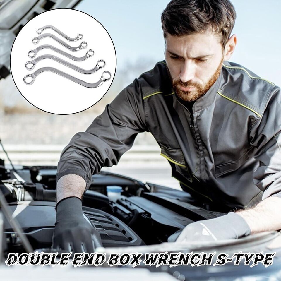SET 5 CHIAVI DA MECCANICO COMBINATE TIPO S FISSE AUTO ANELLO POLIGONALI 10-19MM