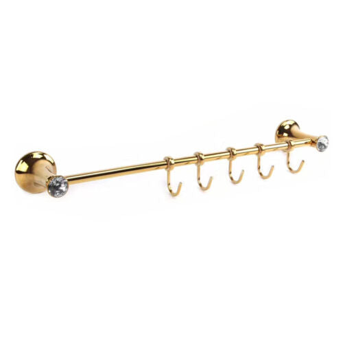 PORTA ASCIUGAMANI 5 GANCI SUPPORTO ARREDO BAGNO CASA CUCINA DORATO ORO DGO-099