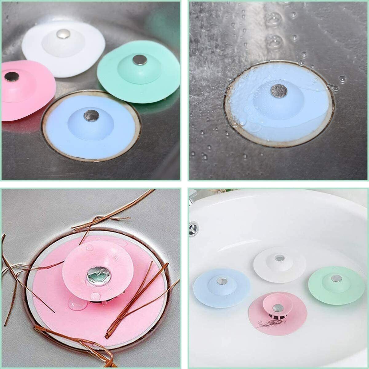 TAPPO DI SCARICO FILTRO PER CAPELLI RIFIUTI DOCCIA VASCA LAVANDINO IN SILICONE