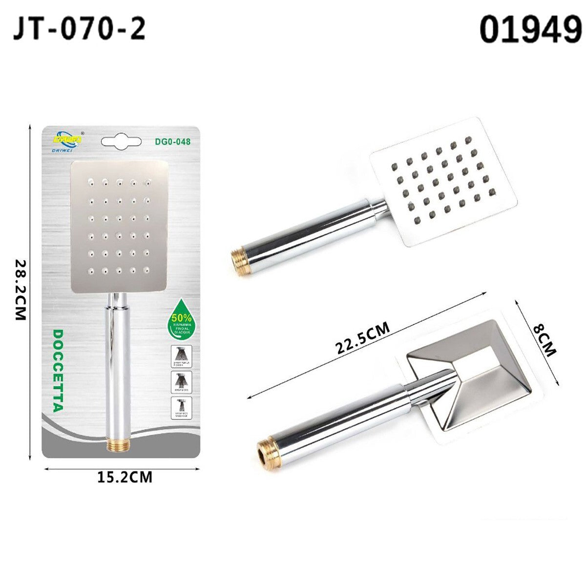 SOFFIONE BRACCIO DOCCINO BAGNO DOCCIA VASCA UNIVERSALE QUADRATO 01949