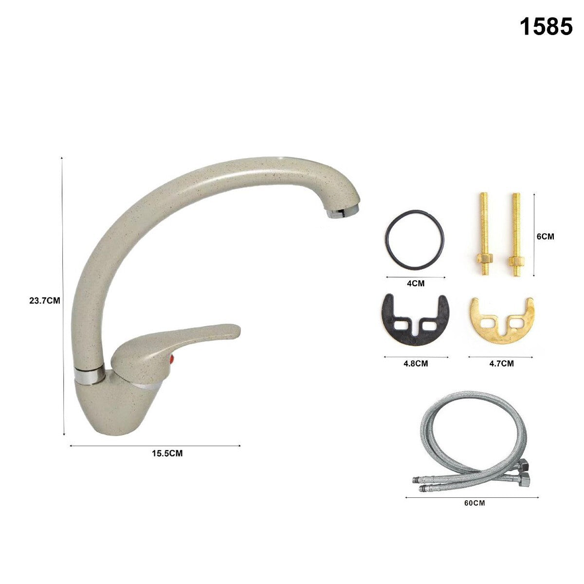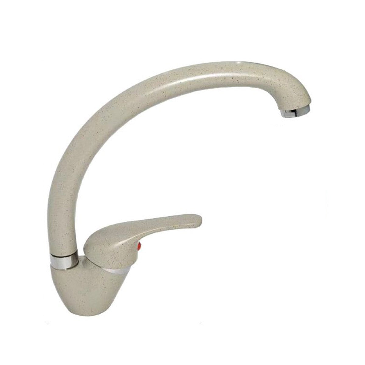 Rubinetto a canna alta in pietra con finitura in sabbia, composto da un beccuccio orientabile quindi utilizzabile per lavelli a due vasche, maniglia monocomando per acqua calda e fredda. Fornito completo di due flessibili, pronto per essere utilizzato fin da subito.Rubinetto a canna alta Beccuccio orientabile utilizzabile per lavelli a due vasche Fornito completo di due flessibili Finitura: PietraNr.1 Rubinetto miscelatore Nr.2 Tubi flessibili di allaccio Nr.1 Kit per montaggio
