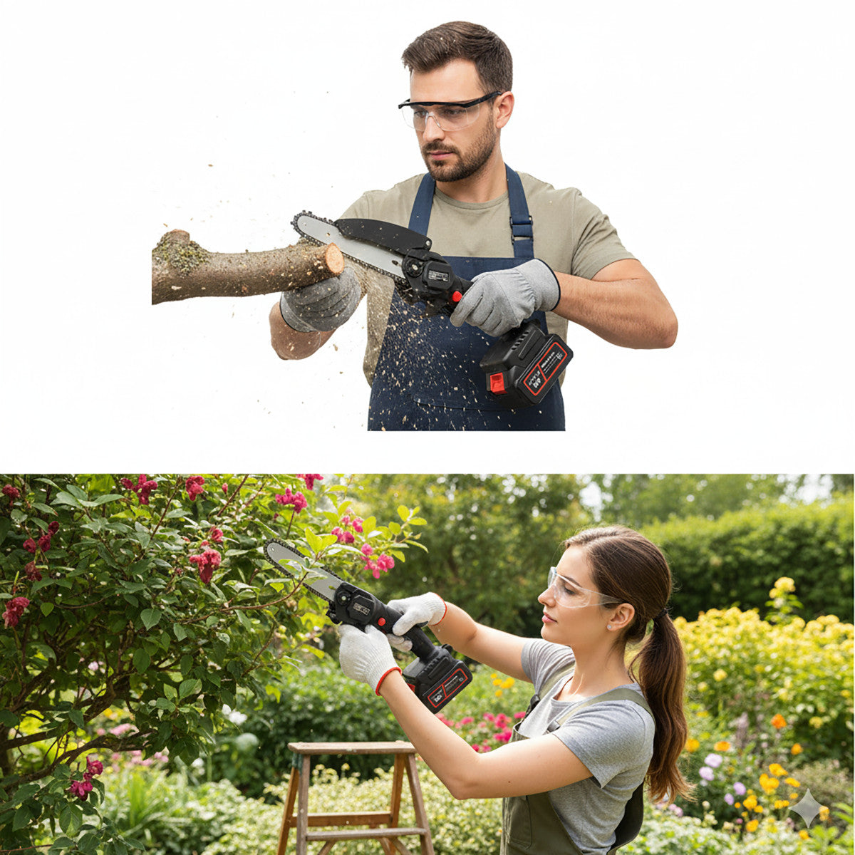 Motore potente in rame e Catena di alta qualità in acciaio con lama da 4" per garantire un taglio regolare Velocità catena di 5m/s per tagliare tronchi fino a 10cm di diametro in meno di 10/15 secondi Batteria ricaricabile di 48 V agli Ioni di litio Carica batteria 240V 50-60Hz - Comoda impugnatura ergonomica Rivestimento antiscivolo con grilletto per attivare la lama - Paraspruzzi ed interruttore di sicurezza Valigetta in plastica rigida con 2 chiusure E' consigliabile ricaricare la batteria dopo ogni utilizzo e di toglierla quando non è in uso Leggera e ideale da usare con una sola mano - Adatta a uomini, donne ed anziani Utilizzata per piccoli disboscamenti, abbattimenti di legno, giardinaggio e piccole potature di rami MAGGIORI INFORMAZIONI Caratteristiche principali: Tensione nominale: 48V Lunghezza della piastra di guida: 4" Velocità catena: 5m/s Tipo di alimentazione: Tecnologia della batteria al litio ricaricabile La confezione contiene: Nr.1 Mini motosega Nr.2 Batterie Nr.1 Cacciavite Nr.1 Caricabatterie Nr.1 Valigetta
