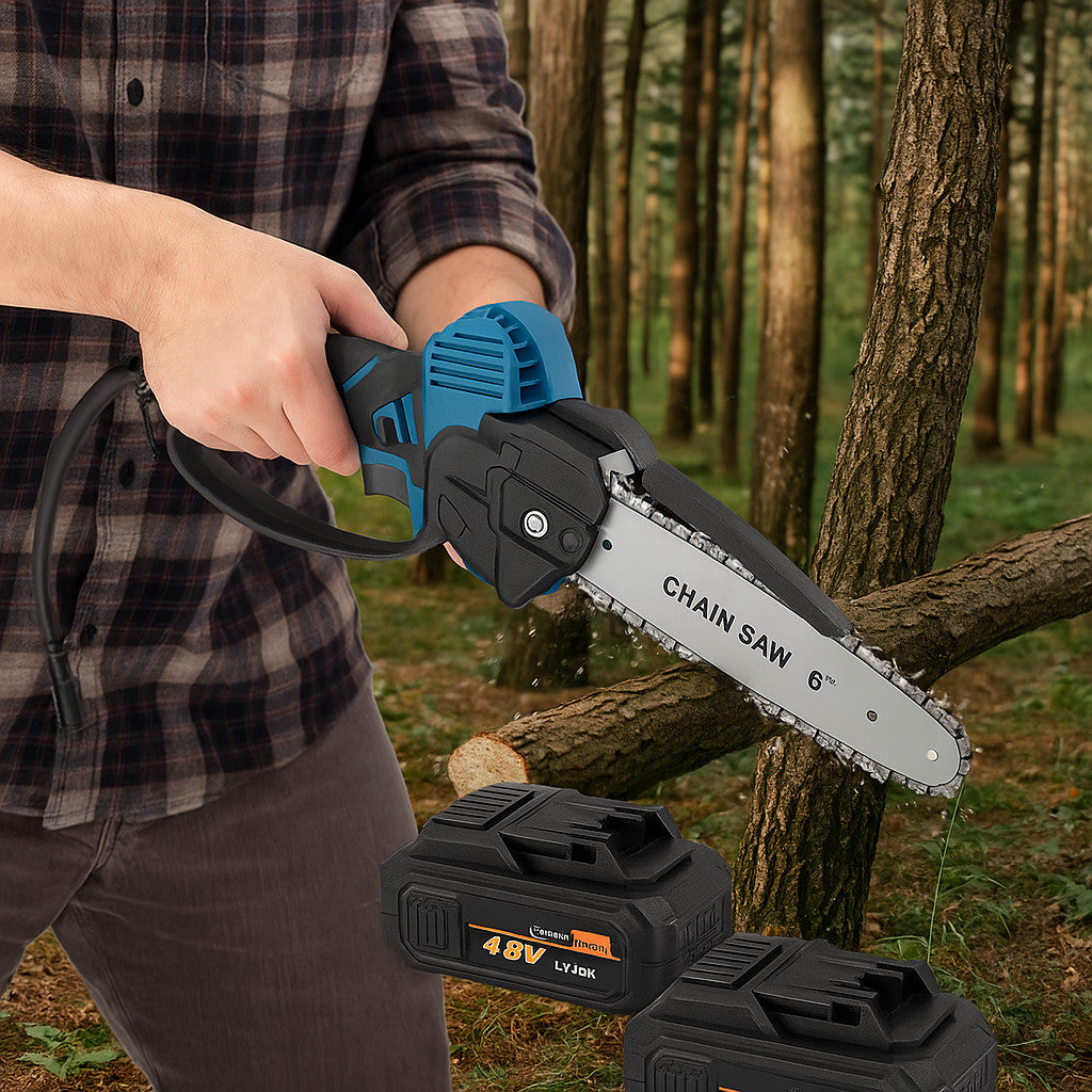 MINI MOTOSEGA 6" PORTATILE RICARICABILE A BATTERIA 48V POTATURA LEGNO SEGA 08206