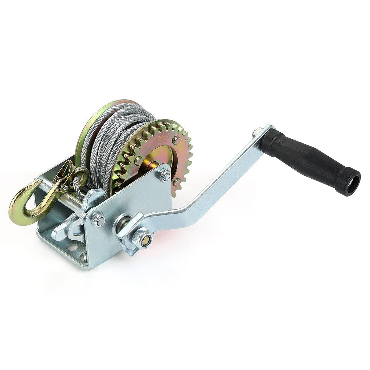 Questo argano a mano ha una capacità di carico massima di 360 kg, con 6 m di cavo robusto e gancio, perfetto per rimorchi, auto, barche. Il verricello manuale con manovella è realizzato in acciaio A3 forgiato, è trattato termicamente per tutta la sua lunghezza per una grande durezza e una lunga durata. Il dispositivo di controllo assicura che i cavi e i carichi siano ben bloccati. Questo cavo d'acciaio anti-usura, forte forza portante, non facile da rompere. Il gancio spesso di alta qualità, resistente all'usura e durevole. Capacità di carico massima di 360 kg, con 6 m di cavo robusto e gancio, perfetto per rimorchi, auto, barche. MAGGIORI INFORMAZIONI Caratteristiche principali: Materiale: acciaio Capacità massima: 360 kg. 800 LBS Lunghezza cavo: 6mt circa La confezione contiene: Nr.1 Argano manuale
