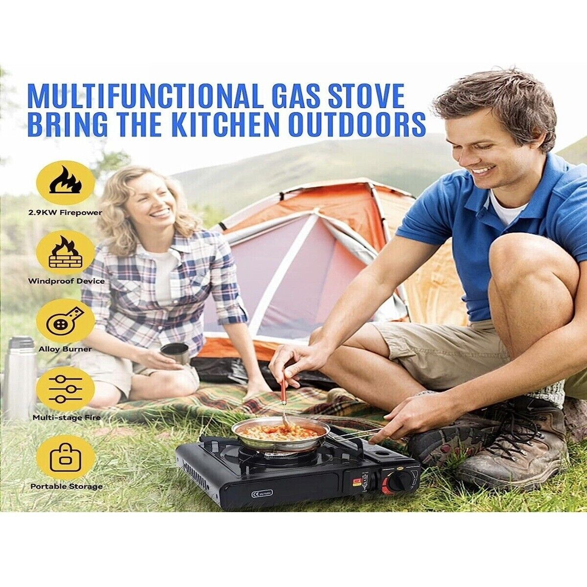 Con il nuovissimo fornello a gas, potrai cucinare ovunque vorrai, in campeggio o semplicemente in giardino, grazie alla bomboletta ricaricabile (non inclusa) avrai sempre il fornello a portata di mano. Il fornello a gas portatile è ideale per ogni tua uscita fuori porta ed è un valido alleato che ti permetterà di preparare deliziosi piatti quando sei in vacanza al mare, in montagna o al lago. Cucina come se fossi a casa grazie alla sua potenza, che oltre ad essere simile a qualsiasi altro fornello medio di casa tua, non ha limiti di utilizzo permettendoti di preparare qualsiasi cosa tu desideri! Bomboletta ricaricabile butano: per ciò che riguarda l'alimentazione il fornello funziona con cartucce di gas butano la bomboletta non è inclusa nella confezione Utilizzo semplice: non è necessaria nessuna competenza per usare il fornello da campeggio, basta inserire la cartuccia di gas e girare l'apposita manopola per liberare il gas, funziona proprio come i fornelli di casa Grazie ai materiali resistenti e alla protezione al surriscaldamento cucinerai in maniera sicura e funzionale.Valigetta Inclusa Dimensioni Valigetta: 36 x 11,5 x 32 cm circa Dimensioni del prodotto: 34 x 28 x 12 cm circa Materiale valigetta: plastica nera Doppia protezione da s