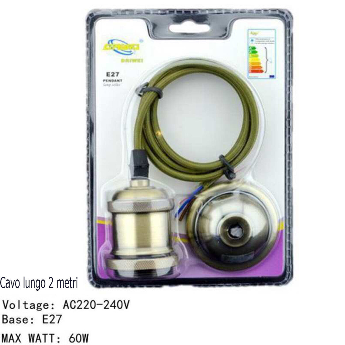PORTALAMPADA LAMPADARIO SOSPENSIONE SOFFITTO PENDENTE E27 VINTAGE 2 METRI VERDE