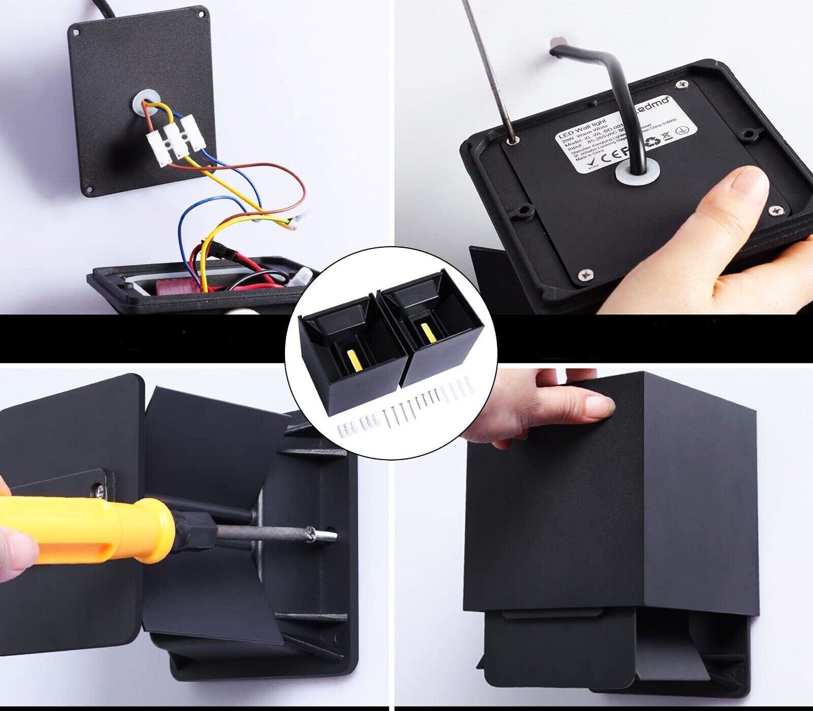 APPLIQUE LED COB LAMPADA PARETE 20W QUADRATO NERO NATURALE INTERNO ESTERNO 18