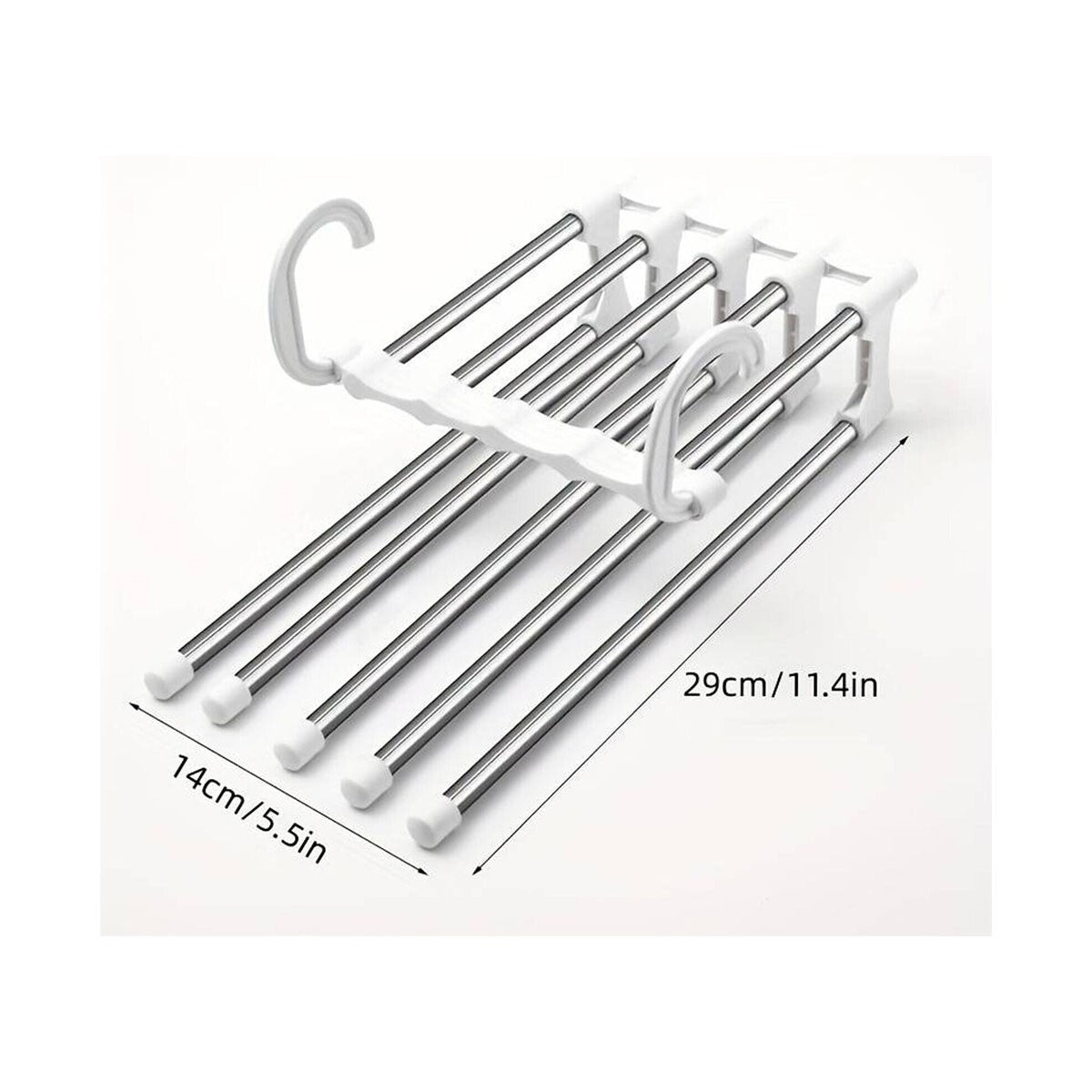 Risparmia facilmente spazio nel tuo armadio con il nostro appendiabiti salvaspazio! Ogni appendiabiti è progettato per avere cinque strati per diversi tipi di vestiti, il che consente di risparmiare molto spazio. È dotato di doppi ganci che tengono al sicuro i tuoi vestiti. I ganci possono anche essere utilizzati in vari modi per appendere pantaloni, gonne, jeans, camicie, asciugamani di diverse dimensioni e altro ancora. L'appendiabiti salvaspazio rende l'organizzazione del tuo guardaroba estremamente semplice ed è anche molto pratico per gli armadi più piccoli. Risparmio di spazio: ogni ripiano ha 5 strati di grucce, che consentono di risparmiare molto spazio nell'armadio, nel guardaroba, nel bagno, nella camera da letto, nella cucina, ecc. Doppi ganci: i doppi ganci in acciaio inossidabile tengono saldamente anche gli oggetti più pesanti e consentono inoltre di modificare facilmente le grucce in diversi modi. Versatile e multifunzionale: l'appendiabiti può essere utilizzato per diversi tipi di vestiti, come pantaloni, gonne, jeans, pantaloni, camicie, asciugamani, abbigliamento sportivo, vestiti e altro ancora. MAGGIORI INFORMAZIONI Caratteristiche principali: Materiale: ABS + Alluminio Colore gancio: Nero o Bianco Il colore verrà inviat