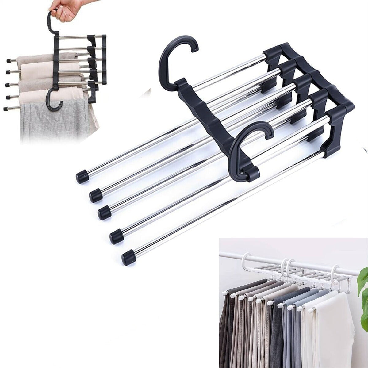 APPENDIABITI SALVASPAZIO PER ARMADIO BAGNO PER 5 PANTALONI PIEGHEVOLE CON GANCIO