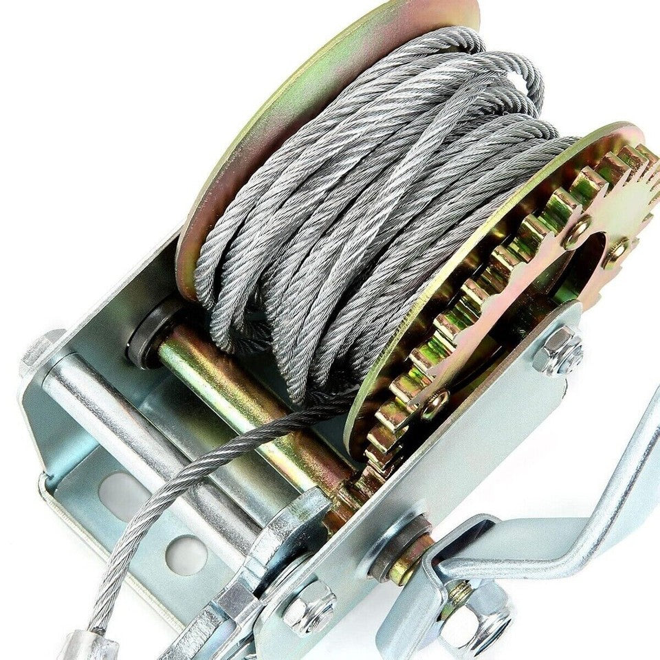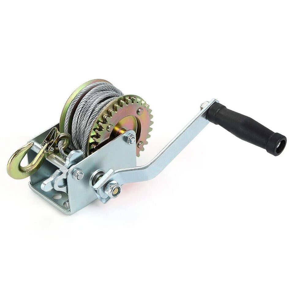 Questo argano a mano con 6 m di cavo robusto e gancio, perfetto per rimorchi, auto, barche. Il verricello manuale con manovella è realizzato in acciaio, è trattato termicamente per tutta la sua lunghezza per una grande durezza e una lunga durata. Il dispositivo di controllo assicura che i cavi e i carichi siano ben bloccati. Questo cavo d'acciaio anti-usura, forte forza portante, non facile da rompere. Il gancio spesso di alta qualità, resistente all'usura e durevole. Con 6 m di cavo robusto e gancio, perfetto per rimorchi, auto, barche. MAGGIORI INFORMAZIONI Caratteristiche principali: Materiale: acciaio Capacità massima: 725 kg. 1600 LBS Lunghezza cavo: 6mt circa La confezione contiene: Nr.1 Argano manuale