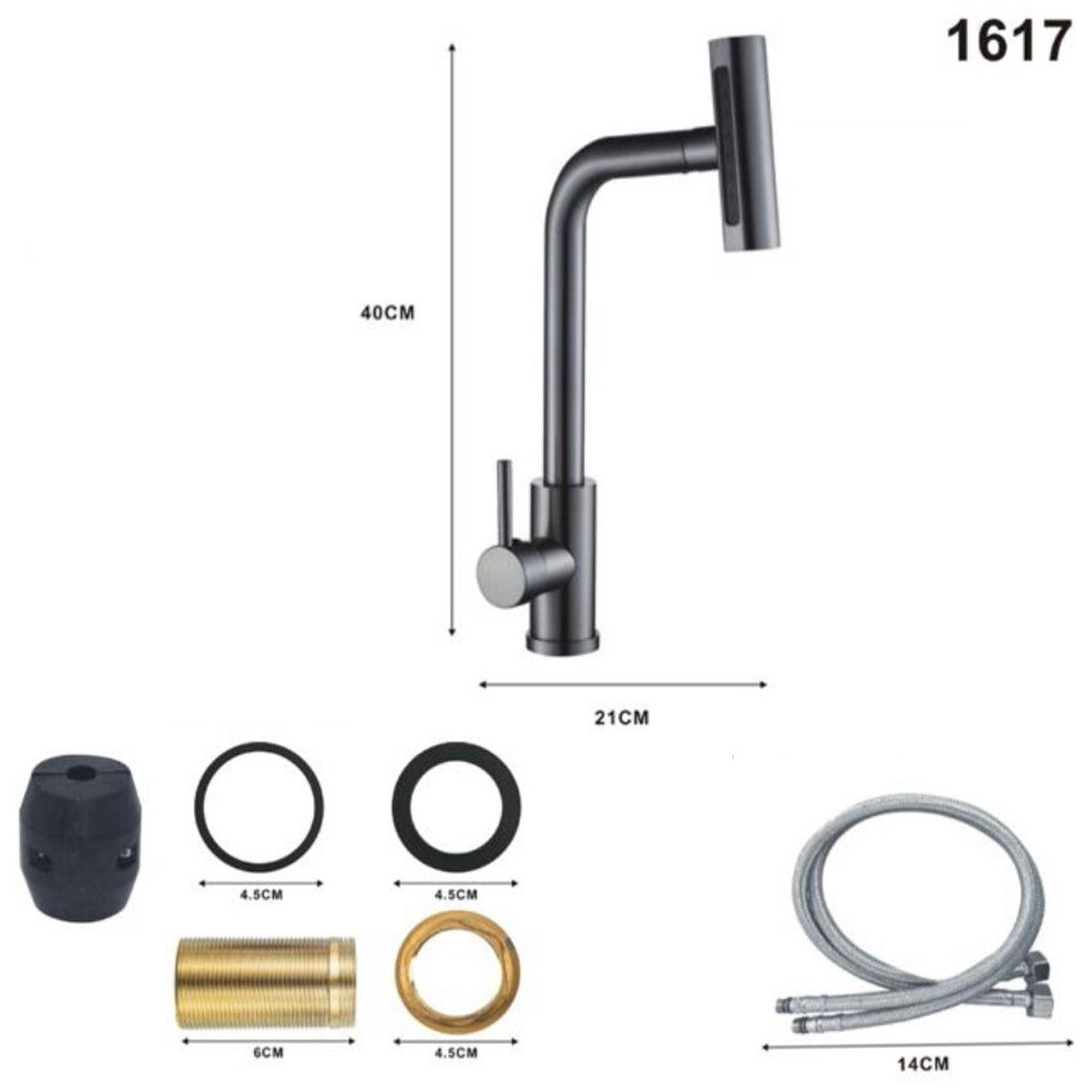 RUBINETTO LAVELLO CUCINA CANNA ALTA MODERNO NERO MISCELATORE LAVANDINO 1617