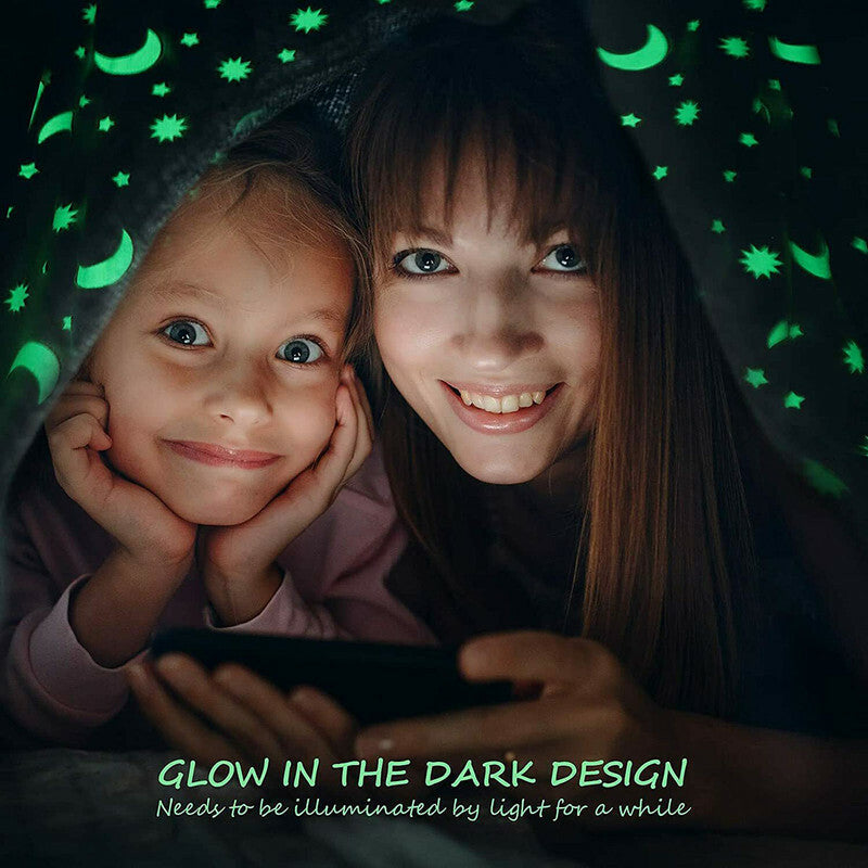Stelle luminose di notte] Con questa coperta unica potrete vedere le stelle luminose al buio. Se si mette una coperta al sole o alla luce per assorbire la luce, è possibile vedere le stelle scintillanti al buio o al buio. Il tempo e la qualità delle emissioni di luce dipendono dal sufficiente assorbimento della luce. Morbida e confortevole: coperta in flanella 100% super comoda e morbida. Morbido, caldo e durevole. Ideale per neonati e bambini. Dimensioni: 150 x 120 cm. La dimensione è perfetta per avvolgersi, i piedi non fuoriescono ed è pratica da piegare e trasportare in viaggio. Regalo perfetto Le graziose coperte sono perfette per i bambini o per i propri cari, rendono il sonno felice e divertente e non rendono più la notte sola. Multifunzionale: la coperta rivestita non solo protegge dal freddo, ma decora anche l'aspetto della tua casa. Acquista un nuovo tipo di coperta illuminata per il tuo bambino, aggiungerà sicuramente più colore e gioia alla stanza del tuo bambino. Adatto per lettini, divani, letti, divani, sedie, uffici, auto e viaggi. MAGGIORI INFORMAZIONI Caratteristiche principali: Dimensioni disponibili: 120x150Cm circa Lavabile in lavatrice a 30 °C. Per prolungare la durata del prodotto, non candeggiare o stirare. Il color