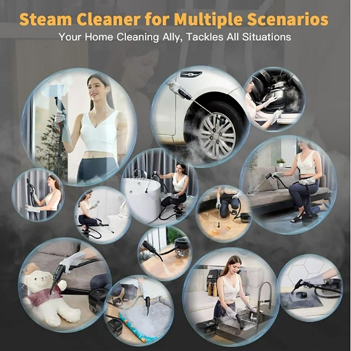 PULITORE A VAPORE PORTATILE 7 ACCESSORI SERBATOIO 1,6L CASA AUTO PAVIMENTI
