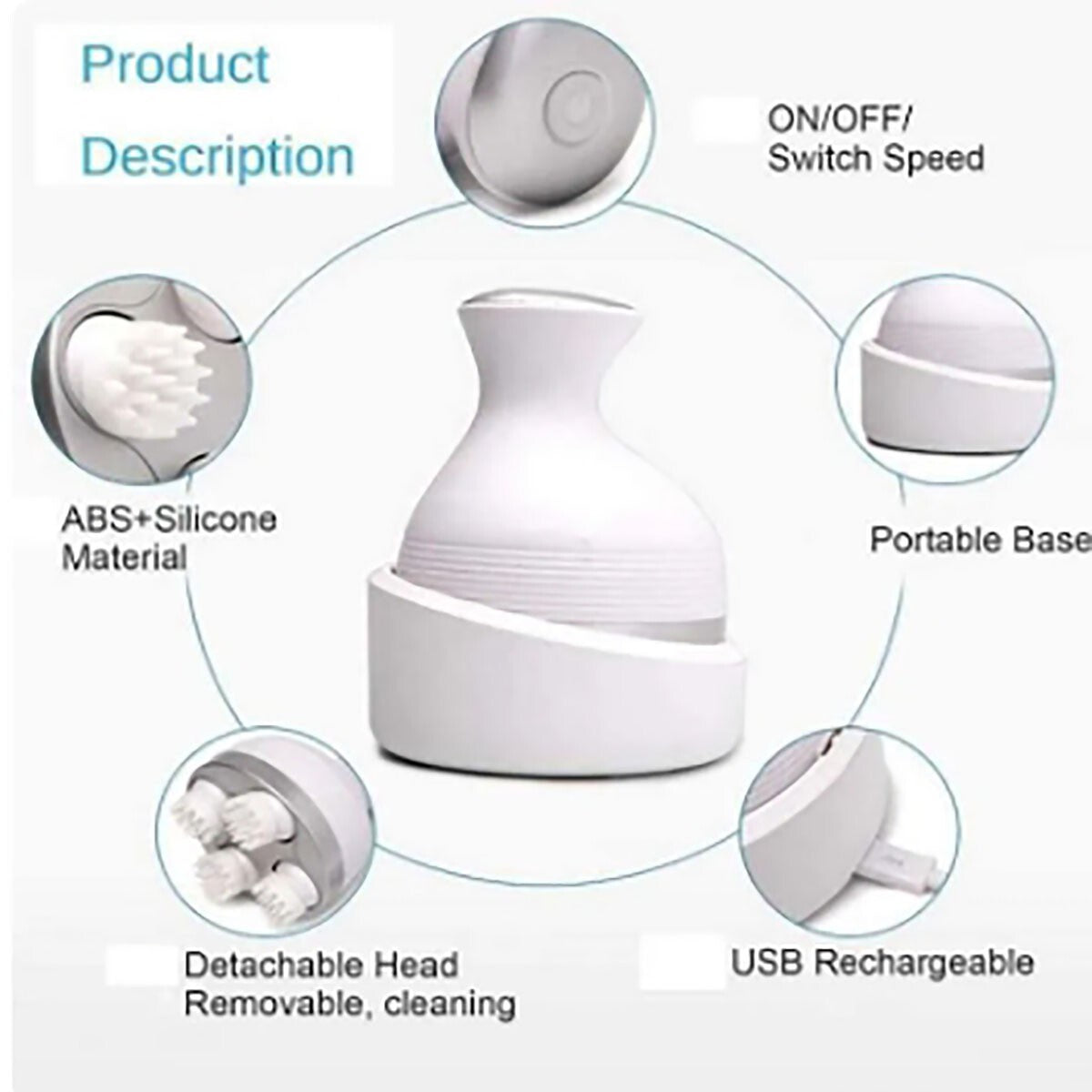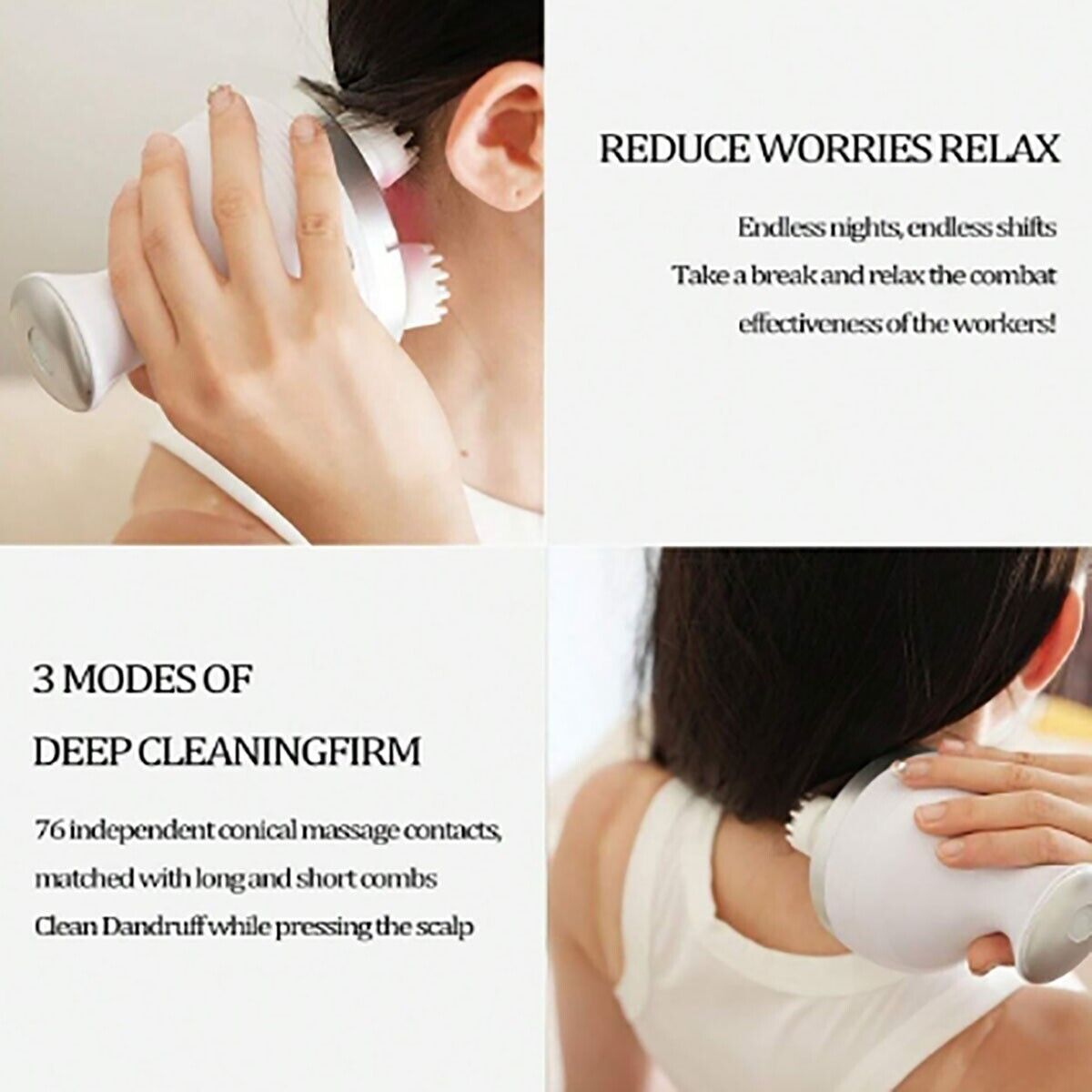 Massaggiatore elettrico multifunzione per la testa con ricarica USB. Massaggia in profondità il cuoio capelluto, migliora la circolazione sanguigna, previene la caduta dei capelli, allevia la fatica, solleva l'umore e favorisce un sonno migliore. Puoi massaggiare qualsiasi parte del corpo. Movimento bidirezionale. Il tempo di ricarica è di 2 ore. Massaggiatore del cuoio capelluto, l'originale cluster di massaggio meridiano 3D, con 6 tipi di effetto di massaggio della medicina cinese che sono apertura, chiusura, spinta, disegno, sfregamento. grattare, può favorire la circolazione sanguigna, migliorare i problemi del cuoio capelluto, passare attraverso i meridiani, eliminare l'affaticamento, eliminare la forfora, fermare il prurito, migliorare il sonno; Può fornire l'esperienza di massaggio meridiano più confortevole. Progettato con 4 testine massaggianti con punte simili a spine. La combinazione di 4 teste e sporgenze delle spine fa una sensazione simile a un massaggio manuale a mano. Sentirai un delicato massaggio che allevia lentamente dolori e stress. È possibile utilizzare uno strumento di massaggio elettrico per alleviare l'affaticamento della testa, del collo, delle spalle, delle mani e di altre parti del corpo. Quando lo strumento ini