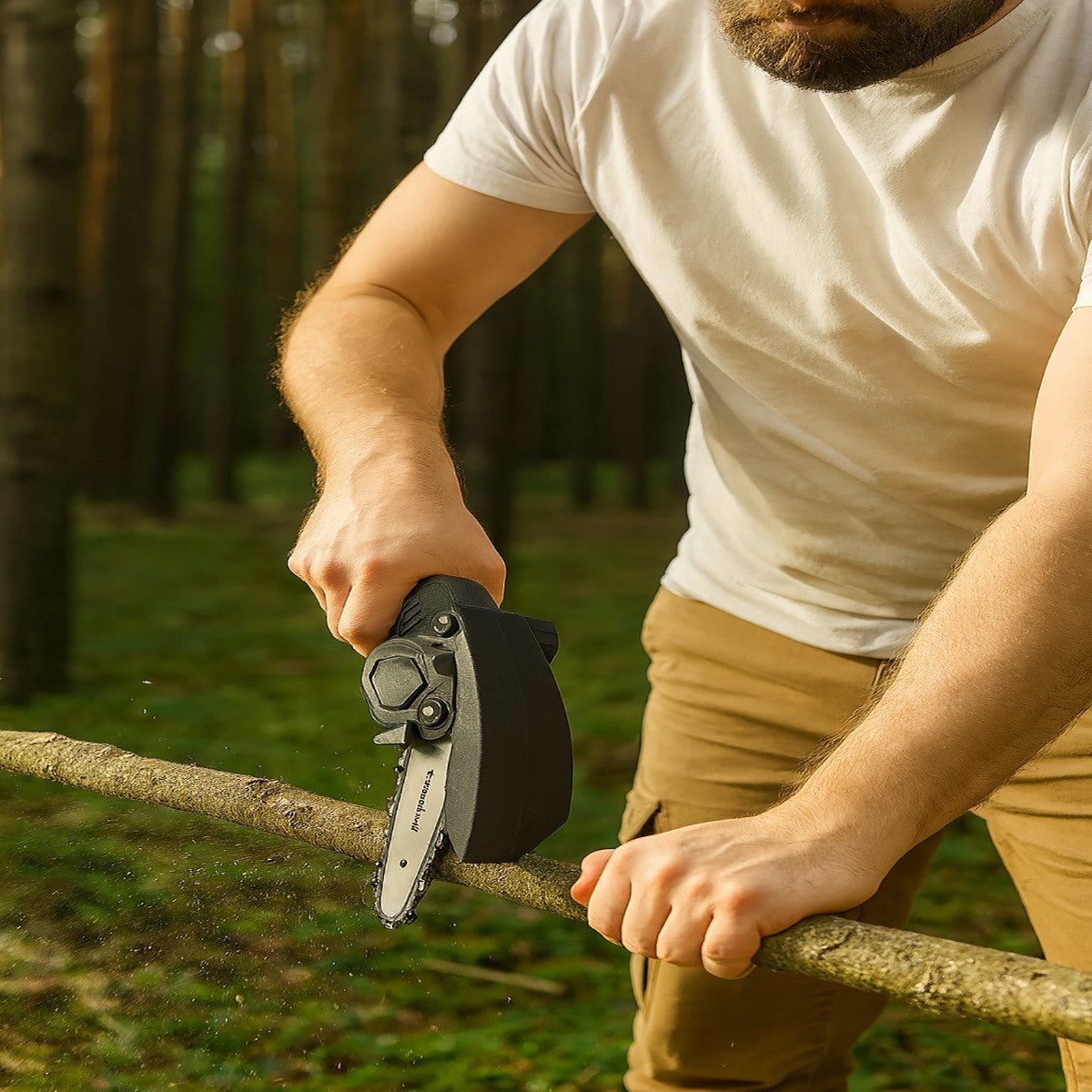 MINI MOTOSEGA 4" PORTATILE RICARICABILE A BATTERIA 48V POTATURA LEGNO SEGA 08208