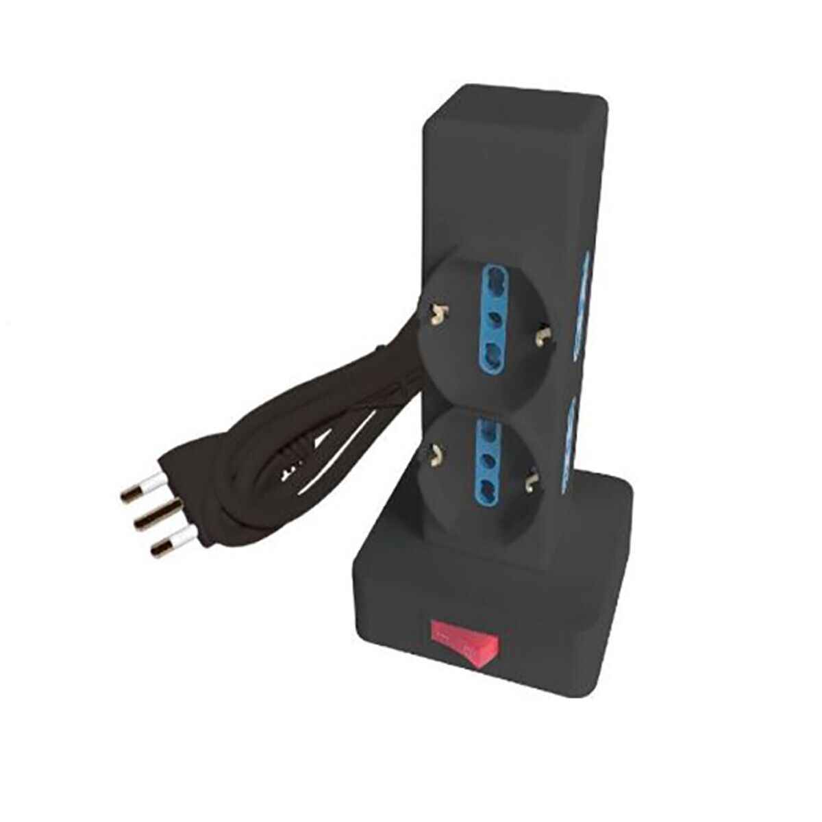 Multipresa a torre verticale da scrivania con 4 uscite bipasso 10/16A e 2 schuko protezione da sovratensione. La protezione da sovratensione protegge le apparecchiature elettroniche da sovratensioni e picchi improvvisi. La ciabatta ha una potenza massima di 2500W. MAGGIORI INFORMAZIONI Caratteristiche principali: Interruttore On Off Con 6 uscite (4 P17/11 10/16A bipasso e 2 schuko P40) Lunghezza cavo: 1,5mt Potenza nominale: 2500W Tensione nominale: 250V Protezione da sovraccarico Base maggiore della presa generale presa verticale, più stabile e sicuro da usare Facile da trasportare La confezione contiene: Nr.1 Multipresa Verticale