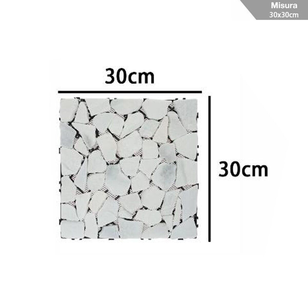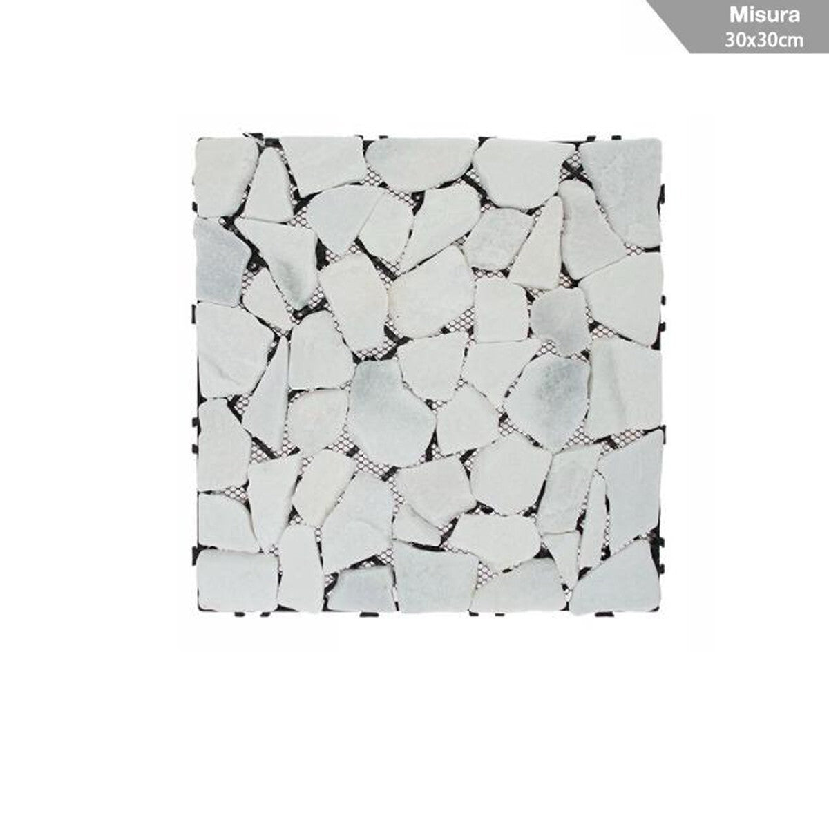 Piastrelle da giardino in marmo con effetto mosaico, ideali per pavimentazioni esterne come terrazzi, balconi, patii e vialetti. Facili da montare grazie al sistema ad incastro fai-da-te, resistenti a tutte le stagioni, antiscivolo e impermeabili. Superficie opaca elegante per un look naturale e tradizionale. MAGGIORI INFORMAZIONI Caratteristiche principali: Materiale: Effetto Marmo Colore: Bianco con venature grigio chiaro Dimensioni: 30 x 30 cm per singola piastrella Stile: Tradizionale effetto mosaico Installazione: Sistema ad incastro semplice Superficie: Opaca Specialità: Antiscivolo, resistente all'acqua, adatto a tutte le stagioni Area di utilizzo: Giardino, terrazzo, balcone, patio, pavimentazioni esterne La confezione contiene: Nr.1 piastrella